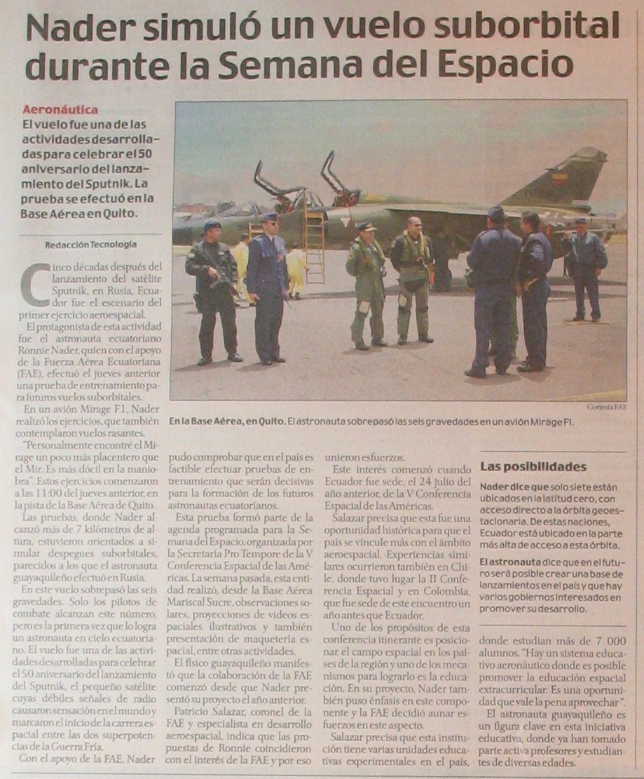 EL TELEGRAFO: Primer ecuatoriano logra ser astronauta
